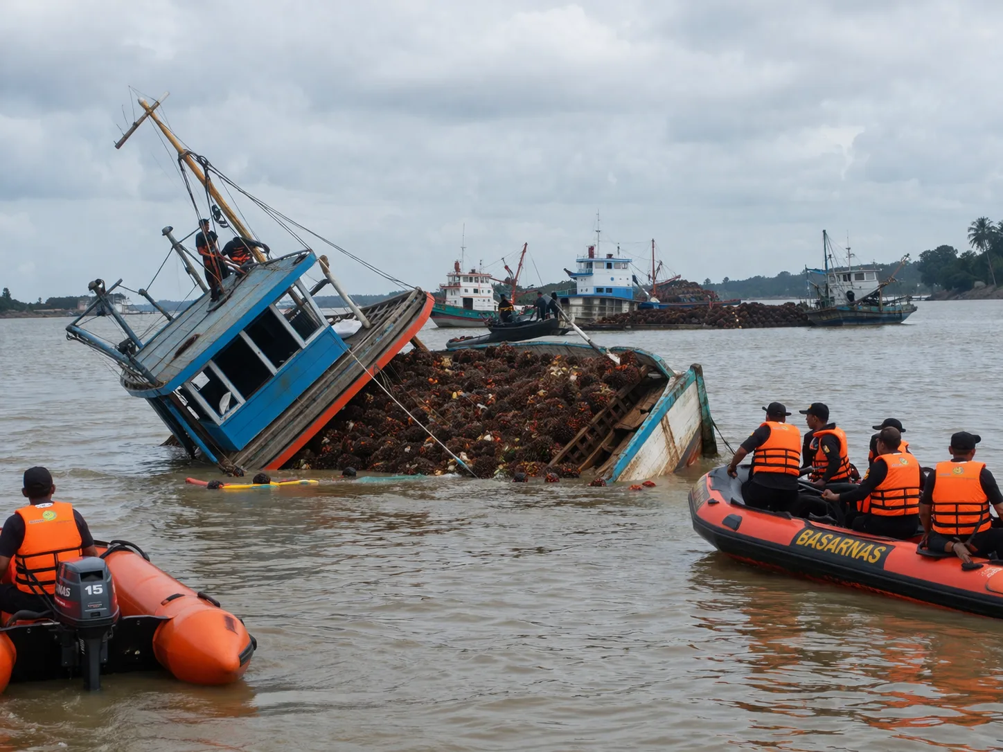 Peristiwa nahas tersebut terjadi sekitar pukul 07.20 WIB saat kapal tengah berlayar membawa muatan kurang lebih 40 ton sawit. Dugaan sementara, kapal mengalami kelebihan muatan hingga kehilangan keseimbangan dan akhirnya karam.